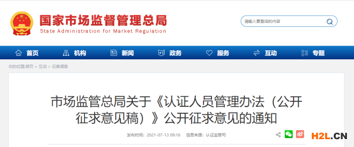 市場監(jiān)管總局:《認(rèn)證人員管理辦法(公開征求意見稿)》公開征求意見