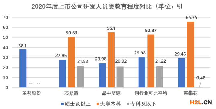 英集芯與同行業(yè)上市公司研發(fā)人員教育程度對(duì)比