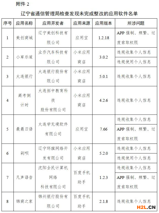 2.遼寧省通信管理局檢查發(fā)現(xiàn)未完成整改的應(yīng)用軟件名單