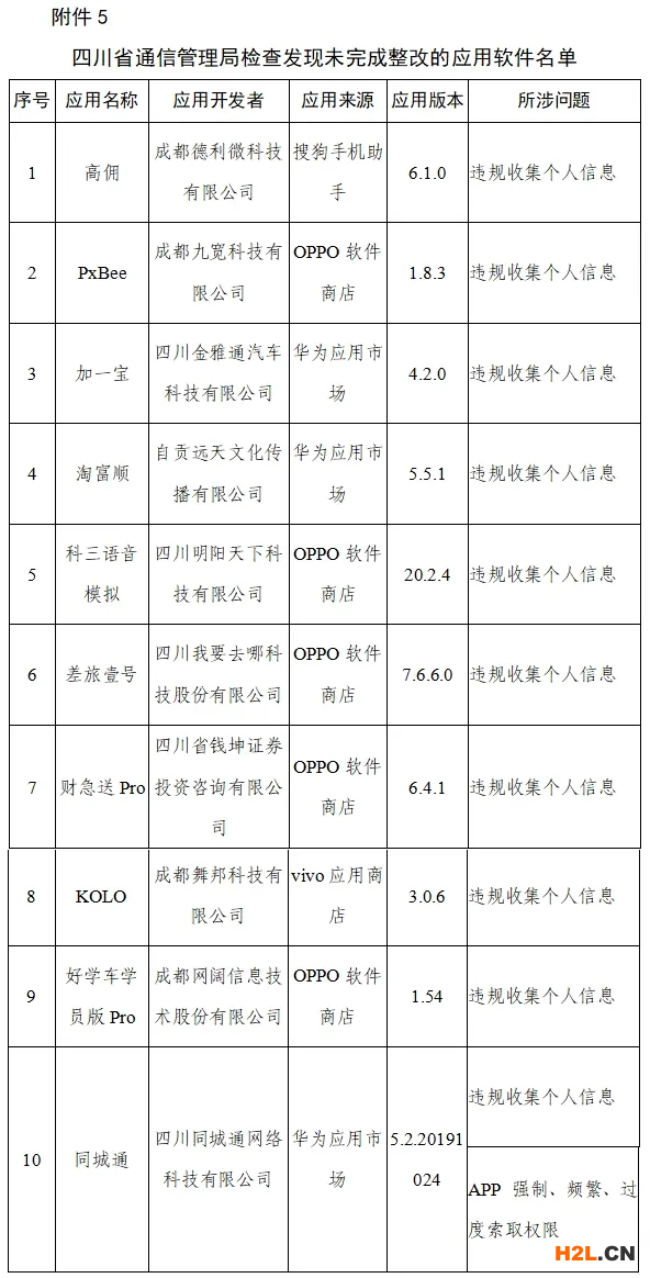 5.四川省通信管理局檢查發(fā)現(xiàn)未完成整改的應(yīng)用軟件名單