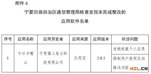 6.寧夏回族自治區(qū)通信管理局檢查發(fā)現(xiàn)未完成整改的應(yīng)用軟件名單