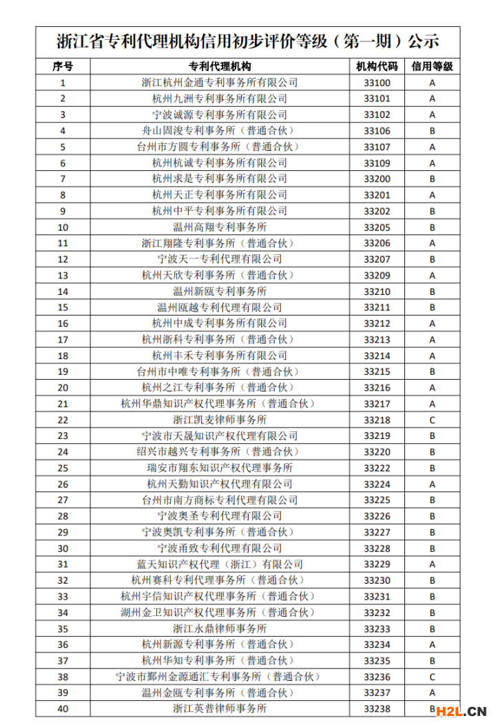 附件1.浙江省專利代理機(jī)構(gòu)信用初步評(píng)價(jià)等級(jí)(第一期)公示