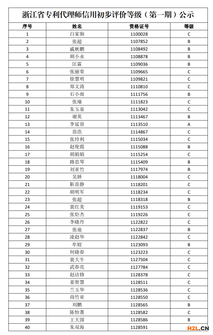 附件2.浙江省專利代理師信用初步評(píng)價(jià)等級(jí)(第一期)公示
