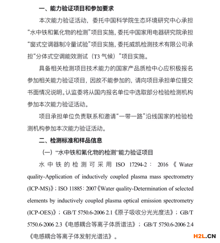 認(rèn)監(jiān)委秘書處關(guān)于組織開展水質(zhì)和電子電器國際檢驗檢測機(jī)構(gòu)能力驗證活動的通知
