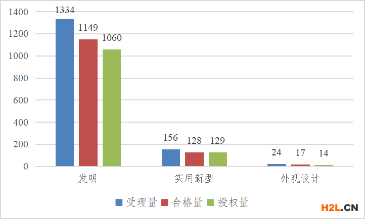 已審結(jié)專利中發(fā)明授權(quán)率、實(shí)用新型授權(quán)率、外觀設(shè)計(jì)授權(quán)率分別為81.34%、 97.46%、100%。