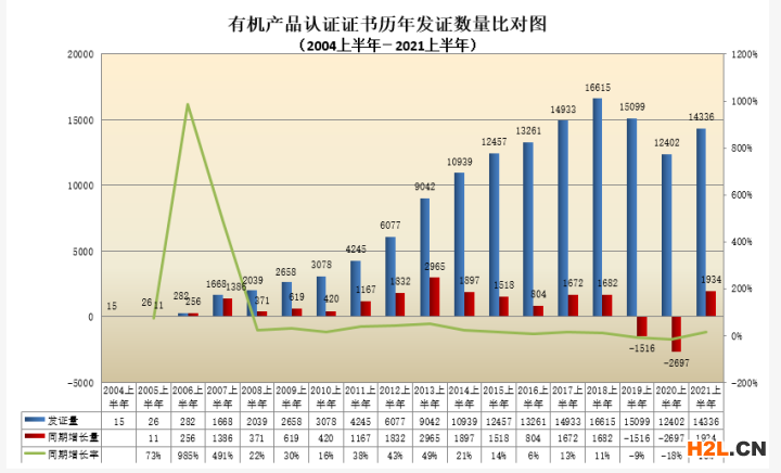 有機產(chǎn)品認(rèn)證證書歷年發(fā)證數(shù)量比對圖