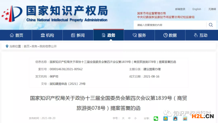 今日,國(guó)家知識(shí)產(chǎn)權(quán)局在提案答復(fù)的函中提到: