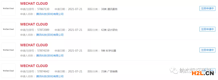 據(jù)企查查顯示,騰訊科技(深圳)有限公司早已在今年7月份就申請(qǐng)注冊(cè)了4件“WECHAT CLOUD”商標(biāo),分類涉及通訊服務(wù)、設(shè)計(jì)研究、科學(xué)儀器、廣告銷售,目前商標(biāo)狀態(tài)處于等待實(shí)質(zhì)審查階段。