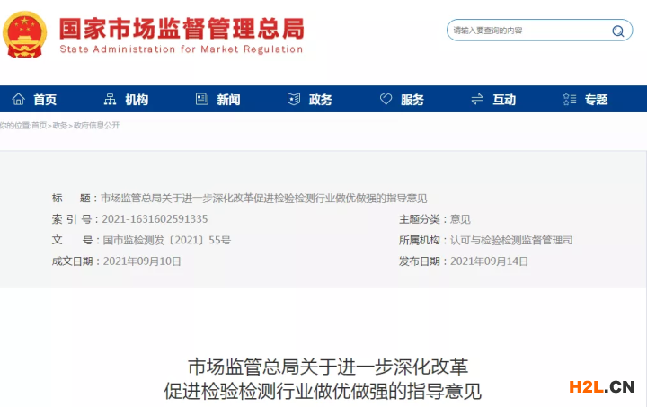 市場監(jiān)管總局關于進一步深化改革促進檢驗檢測行業(yè)做優(yōu)做強的指導意見