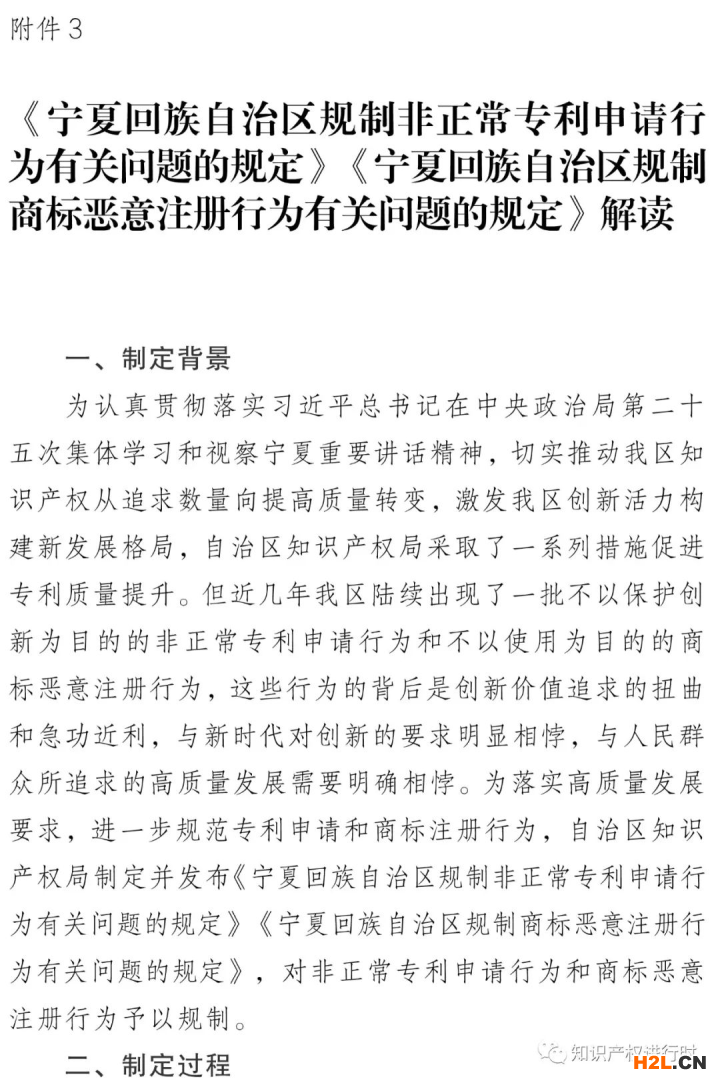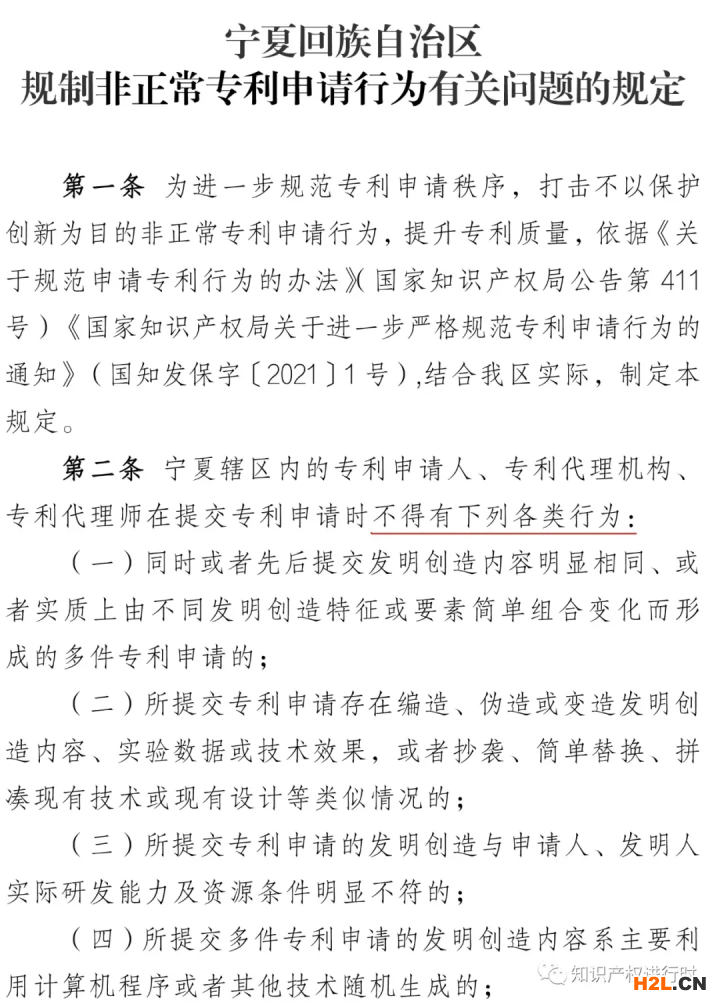 近日,寧夏知識(shí)產(chǎn)權(quán)局印發(fā)關(guān)于規(guī)制非正常專(zhuān)利申請(qǐng)行為、商標(biāo)惡意注冊(cè)行為的規(guī)定,其中提到: