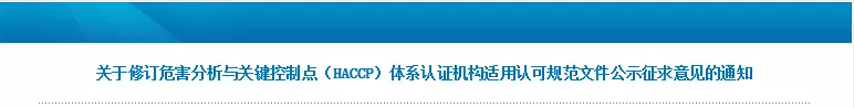 CNAS《危害分析與關(guān)鍵控制點(HACCP)體系認(rèn)證機構(gòu)認(rèn)可方案》公開征求意見