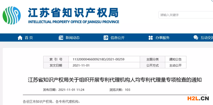 江蘇省知識產(chǎn)權(quán)局關(guān)于組織開展專利代理機構(gòu)人均專利代理量專項檢查的通知
