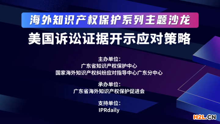 廣東省知識產(chǎn)權(quán)保護中心、國家海外知識產(chǎn)權(quán)糾紛應對指導中心廣東分中心將舉辦美國訴訟證據(jù)開示應對策略沙龍活動?;顒泳唧w通知如下: