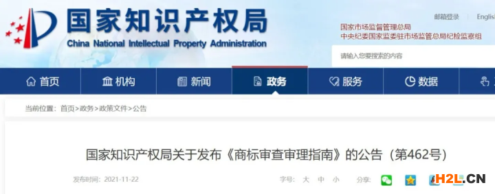 國(guó)家知識(shí)產(chǎn)權(quán)局關(guān)于發(fā)布《商標(biāo)審查審理指南》的公告(第462號(hào))