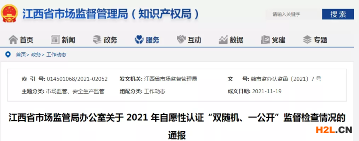 江西省市場監(jiān)管局辦公室關(guān)于 2021 年自愿性認證“雙隨機、一公開”監(jiān)督檢查情況的通報