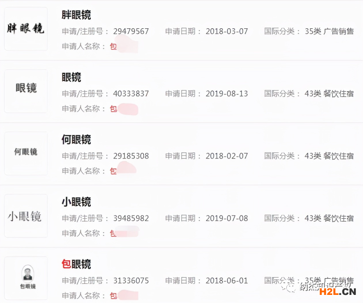 據了解,原告包某某是“眼鏡”注冊商標的商標權人,該商標在2000年5月7日被國家商標局核準注冊。核準使用項目包括餐廳和餐館。其名下還有十多個包含“眼鏡”二字的商標,諸如“胖眼鏡”、“何眼鏡”、“小眼鏡”等。