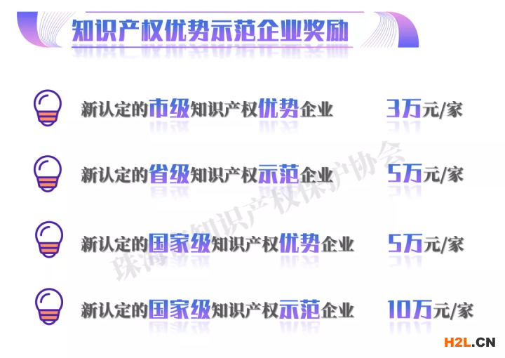 (六)知識(shí)產(chǎn)權(quán)優(yōu)勢(shì)示范企業(yè)獎(jiǎng)勵(lì)。對(duì)經(jīng)市知識(shí)產(chǎn)權(quán)部門(mén)新認(rèn)定的市級(jí)知識(shí)產(chǎn)權(quán)優(yōu)勢(shì)企業(yè),給予每家3萬(wàn)元獎(jiǎng)勵(lì);對(duì)經(jīng)省知識(shí)產(chǎn)權(quán)局新認(rèn)定的省級(jí)知識(shí)產(chǎn)權(quán)示范企業(yè),給予每家5萬(wàn)元獎(jiǎng)勵(lì);對(duì)經(jīng)國(guó)家知識(shí)產(chǎn)權(quán)局新認(rèn)定的國(guó)家級(jí)知識(shí)產(chǎn)權(quán)示范、優(yōu)勢(shì)企業(yè),分別給予每家10萬(wàn)元、5萬(wàn)元獎(jiǎng)勵(lì)。