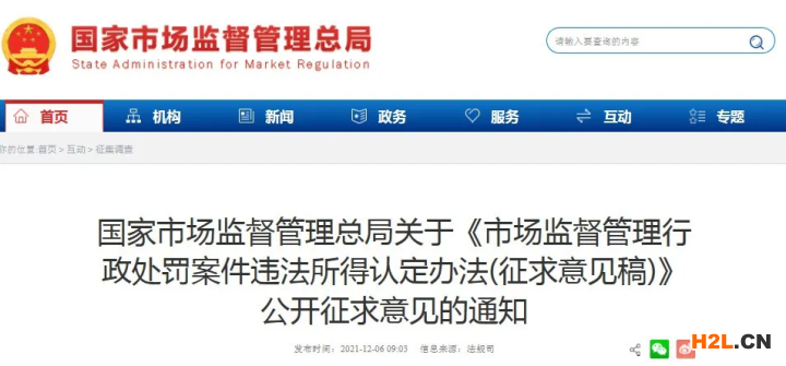近日,國家市場監(jiān)督管理總局研究起草了《市場監(jiān)督管理行政處罰案件違法所得認(rèn)定辦法(征求意見稿)》,現(xiàn)向社會(huì)公開征求意見。具體內(nèi)容如下: