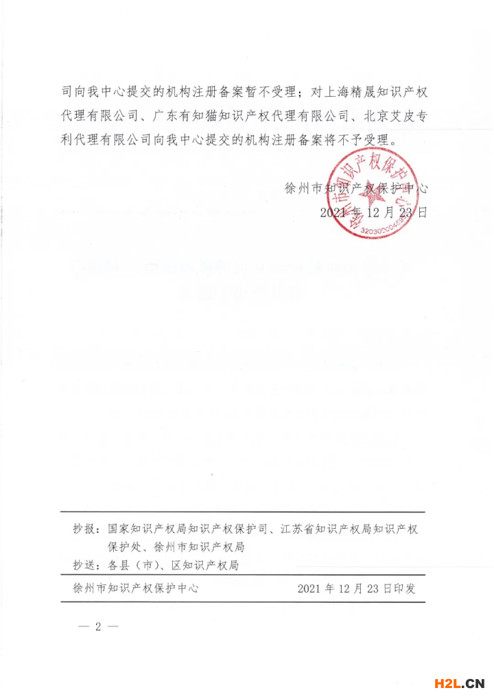 三、對上海精晟知識產(chǎn)權代理有限公司、廣東有知貓知識產(chǎn)權代理有限公司、北京艾皮專利代理有限公司的在我中心的注冊備案申請不予受理。