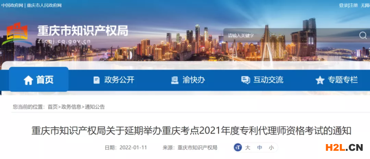 重慶市知識產(chǎn)權(quán)局關(guān)于延期舉辦重慶考點(diǎn)2021年度專利代理師資格考試的通知