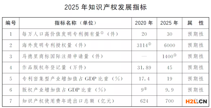 到2025年,知識(shí)產(chǎn)權(quán)制度建設(shè)進(jìn)一步加強(qiáng)、保護(hù)體系進(jìn)一步完善、質(zhì)量效益進(jìn)一步提升、服務(wù)功能進(jìn)一步增強(qiáng)、國際合作進(jìn)一步深化,國際知識(shí)產(chǎn)權(quán)保護(hù)高地基本建成。