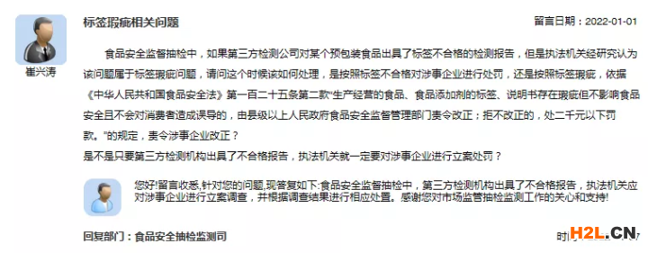 近期,有網(wǎng)友在市場(chǎng)監(jiān)管總局網(wǎng)站公眾留言系統(tǒng)咨詢“標(biāo)簽瑕疵相關(guān)問題”,市場(chǎng)監(jiān)管總局食品安全抽檢監(jiān)測(cè)司給予了答復(fù)。
