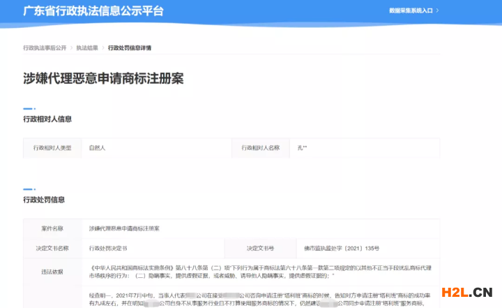 核心提示:近日,廣東省行政執(zhí)法信息公示平臺公布發(fā)布一則行政處罰決定書。XX公司在接受XXX公司咨詢申請注冊塔利班商標的時候,告知對方申請注冊塔利
