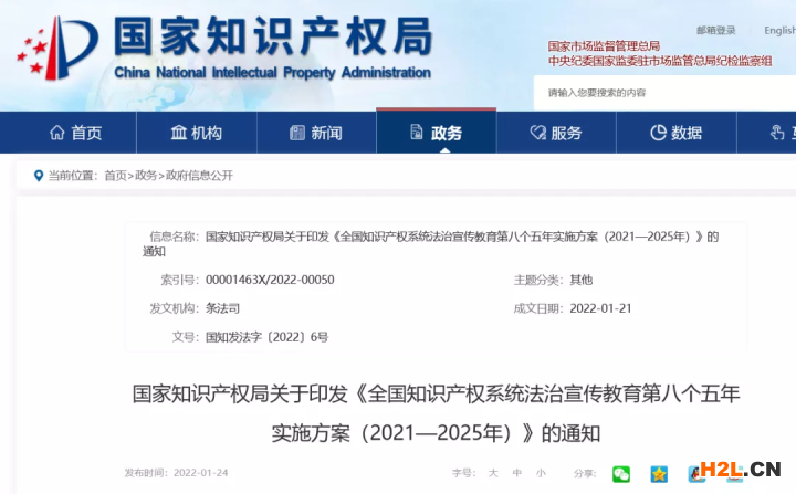 《全國(guó)知識(shí)產(chǎn)權(quán)系統(tǒng)法治宣傳教育第八個(gè)五年實(shí)施方案(2021—2025年)》全文發(fā)布!