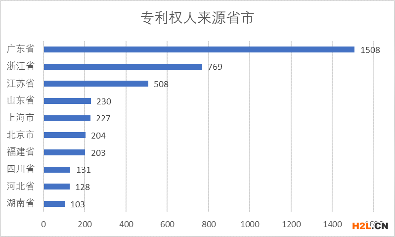 專利權(quán)人主要來(lái)源于廣東、浙江和江蘇;