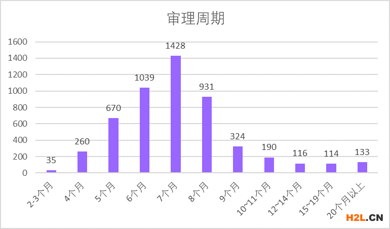 以“無(wú)效請(qǐng)求提出日”至“無(wú)效決定發(fā)文日”來(lái)計(jì)算審理周期,國(guó)家知識(shí)產(chǎn)權(quán)局對(duì)無(wú)效案件的審理周期大多數(shù)為5~8個(gè)月。有少量案件的審理周期很短,為2-4個(gè)月,亦有少量案件的審理周期較長(zhǎng),為15個(gè)月以上。其中審理周期20個(gè)月以上的原因包括:批量案件、關(guān)聯(lián)案件、權(quán)利要求數(shù)量過多、專利權(quán)轉(zhuǎn)讓、保全、涉及行政訴訟或因行政訴訟重新作出決定等。
