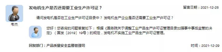 發(fā)電機生產(chǎn)是否還需要工業(yè)生產(chǎn)許可證?:
