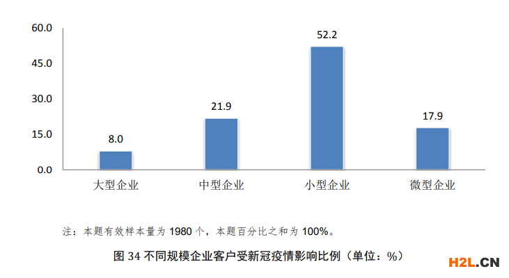 另外,新冠疫情的不斷反復也是知識產(chǎn)權(quán)服務機構(gòu)面臨的一大挑戰(zhàn),其影響主要體現(xiàn)在對中小型企業(yè)開展的業(yè)務上。調(diào)查顯示,52.2%的知識產(chǎn)權(quán)服務機構(gòu)認為疫情對小型企業(yè)客戶影響最大,21.9%認為對中型企業(yè)影響最大,17.9%認為對微型企業(yè)的影響最大。盡管可通過網(wǎng)絡(luò)辦理部分知識產(chǎn)權(quán)服務,但網(wǎng)絡(luò)溝通仍不及現(xiàn)場服務的便捷性。