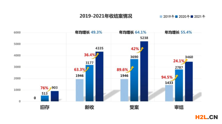 (注:因系統(tǒng)數(shù)據(jù)抓取原因,法庭2019年、2020年實(shí)際新收案件分別為1946件、3177件,2019年實(shí)際舊存案件為513件,各比當(dāng)年法庭年度報(bào)告發(fā)布數(shù)據(jù)多1件,本次對(duì)此一并予以訂正)
