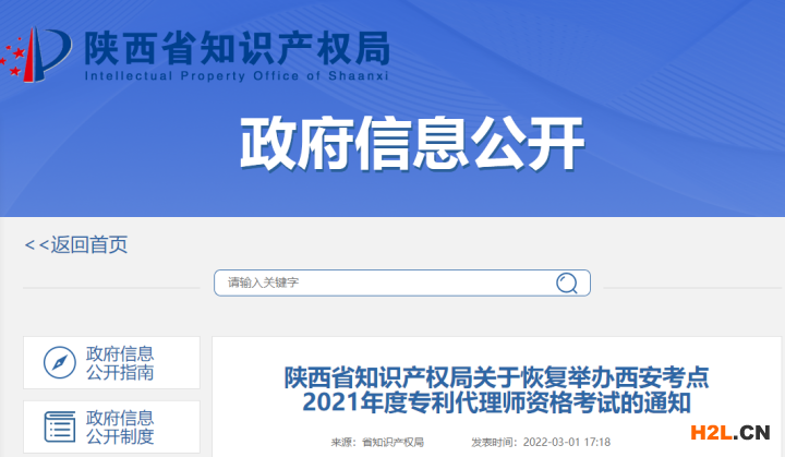陜西省知識產(chǎn)權局關于恢復舉辦西安考點2021年度專利代理師資格考試的通知