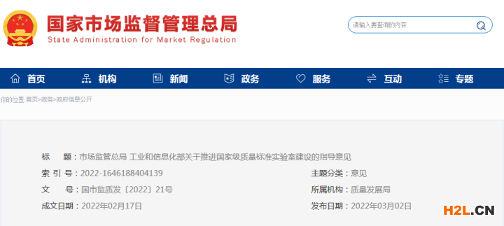 市場監(jiān)管總局 工業(yè)和信息化部關(guān)于推進(jìn)國家級質(zhì)量標(biāo)準(zhǔn)實驗室建設(shè)的指導(dǎo)意見