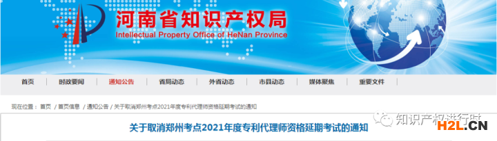 ?關(guān)于取消鄭州考點(diǎn)2021年度專利代理師資格延期考試的通知