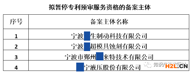 按照《中國(guó)(寧波)知識(shí)產(chǎn)權(quán)保護(hù)中心關(guān)于規(guī)范專利預(yù)審申請(qǐng)行為的管理辦法(試行)》(以下簡(jiǎn)稱管理辦法)的相關(guān)規(guī)定,本中心對(duì)2021年度預(yù)審案件進(jìn)行了統(tǒng)計(jì),梳理出預(yù)審合格率低于50%的企業(yè)名單,并于2022年1月13日以書面形式告知企業(yè)和當(dāng)?shù)刂鞴懿块T。通過意見收集、數(shù)據(jù)復(fù)核、現(xiàn)場(chǎng)溝通等環(huán)節(jié),本中心最終確定擬暫停專利預(yù)審服務(wù)資格的備案主體名單如下: