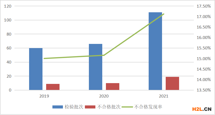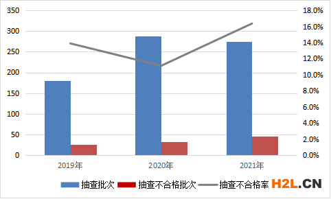 圖2 鋁合金建筑型材產(chǎn)品近3年國家監(jiān)督抽查情況