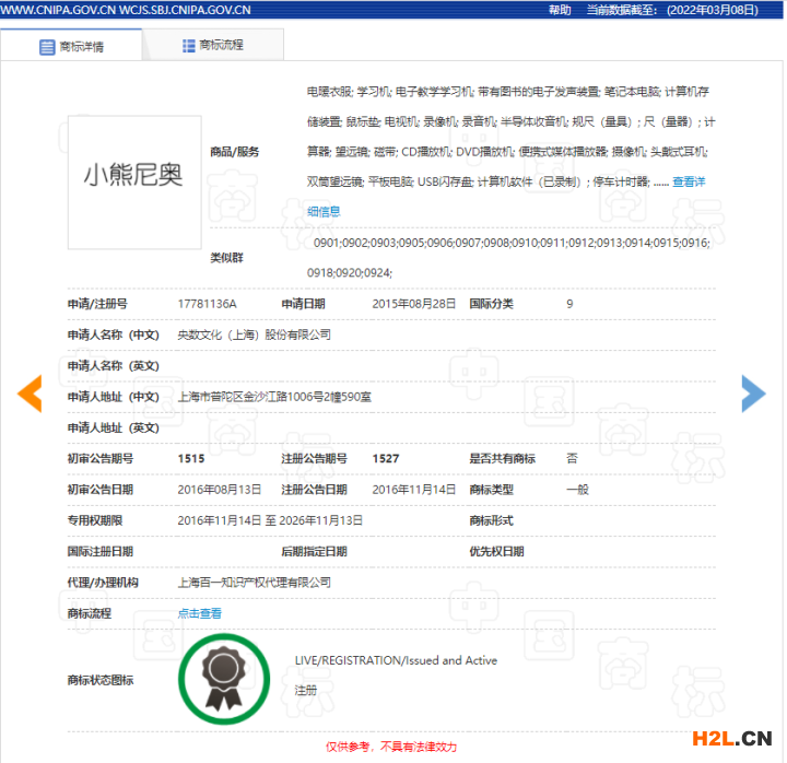 經(jīng)查,央數(shù)在多個(gè)類別申請注冊“小熊尼奧 NEOBEAR”商標(biāo),2015年在第9類上分別申請了兩件商標(biāo),其中一件商標(biāo)即為本次第14125801號“小熊尼奧 NEOBEAR”商標(biāo),指定使用在第0901、0907、0908類似群上,指定商品包括“微處理機(jī); 遙控信號用電動裝置; 計(jì)算機(jī)游戲軟件;筆記本電腦; 計(jì)算機(jī)程序(可下載軟件); 便攜式媒體播放器; 計(jì)算機(jī); 電子出版物(可下載); 計(jì)算機(jī)軟件(已錄制); 電子筆(視覺演示裝置)”(先放這,后面有用),該商標(biāo)已于2015年4月21日獲準(zhǔn)注冊。小熊電器應(yīng)是在2021年12月對此件商標(biāo)提起了“撤三”申請,目前應(yīng)處于央數(shù)提供使用證據(jù)的階段。