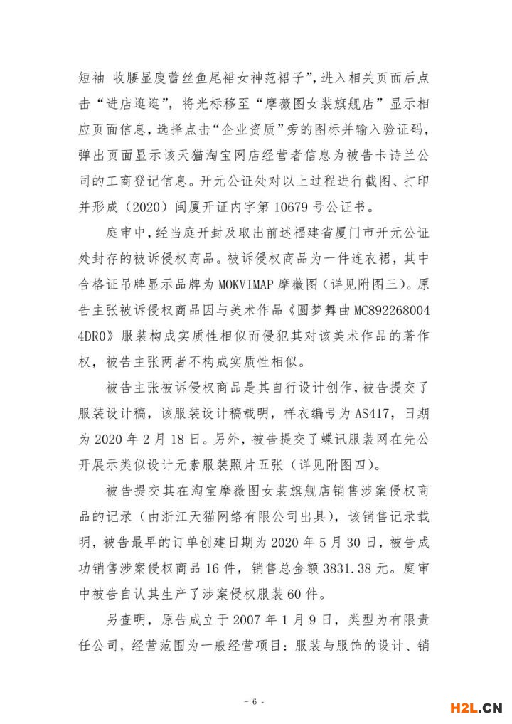 因此,關于原告是否獨立完成《圓夢舞曲MC8922680044DR0》服裝的問題。原告向本院提交的《圓夢舞曲MC8922680044DR0》作品備案證書、樣衣制作版單、原告官方微博截屏、Maxrieny旗艦店(天貓)銷售截屏等證據(jù)已經(jīng)形成完整的證據(jù)鏈,足以證明該公司已獨立完成《圓夢舞曲MC8922680044DR0》服裝。