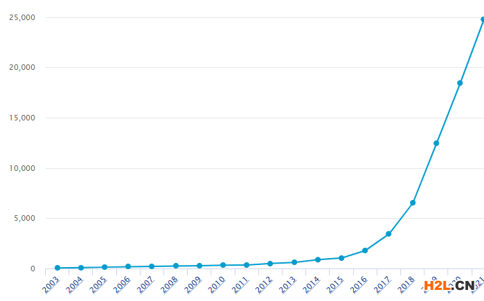 當前全球機器學習主題的公開專利數(shù)已近七萬件,從圖1中可以看出,機器學習的公開專利呈現(xiàn)近乎完美曲線般的逐年上升趨勢,且遞增趨勢愈發(fā)迅猛,技術研究熱度高漲,2021、2020和2019這三年公開的專利數(shù)量已分別達到了24779件、18438件和12445件。