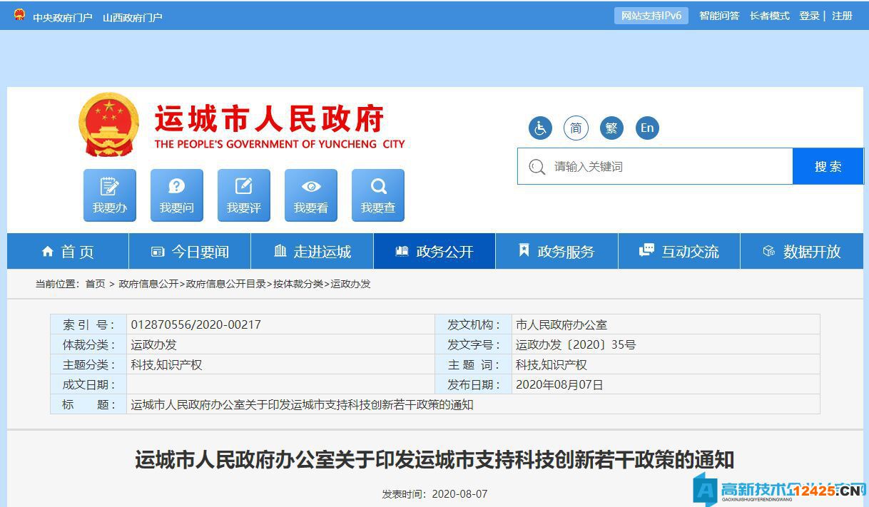 運城市高新技術(shù)企業(yè)獎勵政策:運城市支持科技創(chuàng)新的若干政策