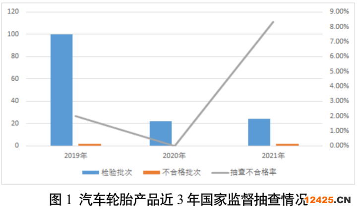 (二)汽車輪胎抽查不合格率為8.3%。本次在流通領(lǐng)域抽查了8個(gè)省(市)24家企業(yè)生產(chǎn)的24批次產(chǎn)品,發(fā)現(xiàn)2批次產(chǎn)品不合格,抽查不合格率為8.3%。該產(chǎn)品近3年抽查不合格率分別為2.0%、0%、8.3%。
