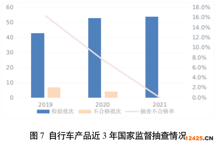 (十二)自行車未發(fā)現(xiàn)不合格。本次抽查了7個(gè)省(市)54家企業(yè)生產(chǎn)的54批次自行車產(chǎn)品,重點(diǎn)對(duì)制動(dòng)性能、把立管、車把部件的強(qiáng)度、反射器等13個(gè)項(xiàng)目進(jìn)行了檢驗(yàn),未發(fā)現(xiàn)不合格。該產(chǎn)品近3年抽查不合格率分別為16.3%、7.5%、0%。