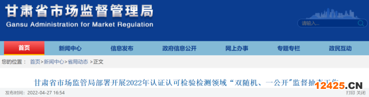 甘肅省市場監(jiān)管局部署開展2022年認證認可檢驗檢測領(lǐng)域“雙隨機、一公開"監(jiān)督抽查工作