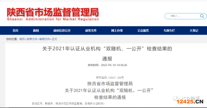 5家認證機構(gòu)“移交查處”,陜西省發(fā)布“雙隨機、一公開”檢查結(jié)果