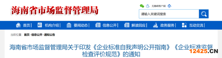 核心提示:日前,海南省市場監(jiān)督管理局發(fā)布《海南省市場監(jiān)督管理局關(guān)于印發(fā)〈企業(yè)標(biāo)準(zhǔn)自我聲明公開指南〉〈企業(yè)標(biāo)準(zhǔn)監(jiān)督檢查評價規(guī)范〉的通知》,對企