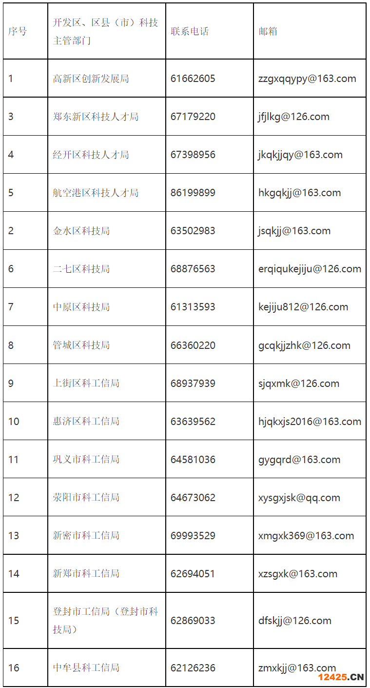 (一)各開發(fā)區(qū)、區(qū)縣(市)科技主管部門聯(lián)系方式