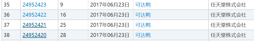 當然,眾多商標中,第28類(玩具和游戲裝置類)在任天堂株式會社手中,商標已注冊公告。