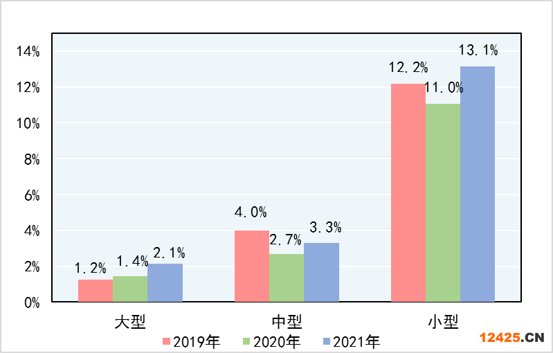 從企業(yè)規(guī)模情況看,抽查的大、中、小型企業(yè)數分別占抽查企業(yè)總數的2.1%、5.9%、91.9%,小型企業(yè)抽查比例比上年增加2.5個百分點。大、中、小型企業(yè)產品抽查不合格率分別為2.1%、3.3%、13.1%,分別比上年上升0.7、0.6、2.1個百分點。大、中型企業(yè)產品抽查不合格率持續(xù)保持較低水平;小型企業(yè)產品抽查不合格率遠高于大、中型企業(yè),產品質量有待提升。